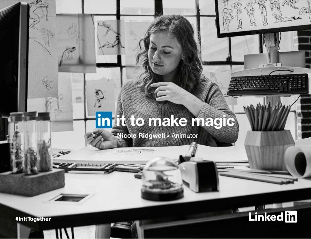شبكه رسانه هاي اجتماعي Powerhouse LinkedIn قصد دارد كليشه فعلي "يقه سفيد" خود را خرد كند. اين برند اخيراً در زمان نمايش جايزه گلدن گلوبس ، يك تلويزيون تلويزيوني با عنوان "در آن با هم" راه اندازي كرد ، يك اقدام تبليغاتي كه در گذشته از ويژگي هاي نام تجاري آن نامشخص است. اما اين معقول است زيرا LinkedIn در تلاش است تا از درك فعلي خود فاصله بگيرد. "در آن با هم" كمپين ويژگي هاي طيف متنوعي از مردم و كسب و كار.